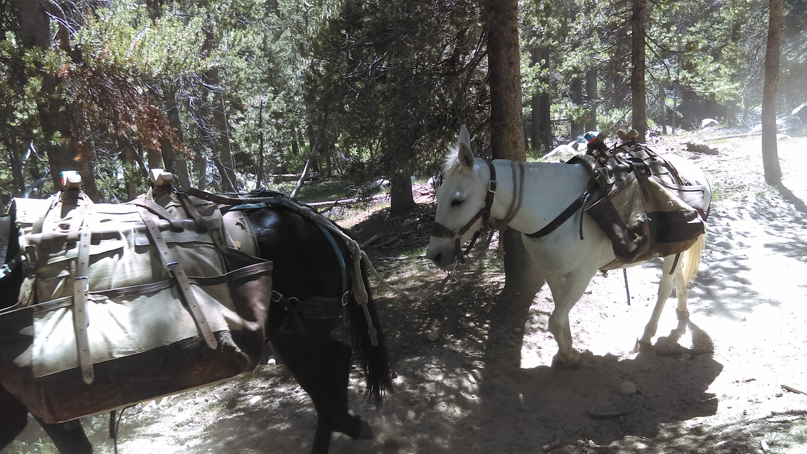 Na poště odesílám obálku s mapami na další etapu, v obchodě dokupuji pár zásob (čerstvé pomeranče a avokádo), zdravím se s hajkry a pak s povolením v kapse vyrážím na stezku směrem k jezerům "Cathedral Lakes". Na stezce se míjím s početnou skupinou koní, kteří na zádech nesou zásoby do odlehlé lesní rangerské stanice.